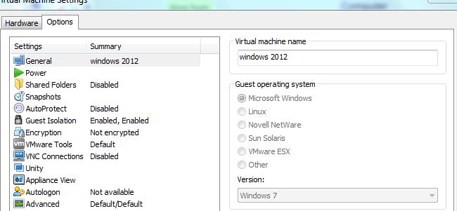 - En caso de haber creado el servidor con otro sistema operativo, es necesario cambiar en las opciones de la maquina virtual la versión de sistema operativo tiene que estar en Windows 7.